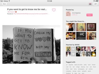 We Heart It está optimizada para dispositivos móviles con S.O. iOS 6.0 y superior, también disponible en Español, Inglés y Catalán. Su actual versión es 4.0.6 y su última actualización fue en 22/07/2014.